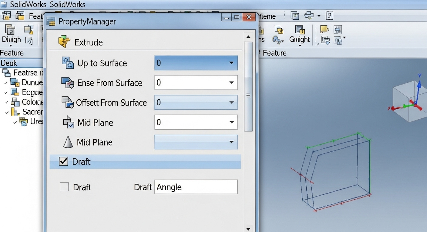 단순히 숫자를 넣어 돌출시키는 단계를 넘어섰다면, 이제는 마침 조건을 마스터할 차례입니다. “50mm 돌출” 대신 “저 면까지 돌출”이라는 조건을 주면, 나중에 기준이 되는 면의 위치가 바뀌어도 내 모델이 알아서 길이를 조절합니다. 이것이 바로 파라메트릭 설계의 진수입니다.